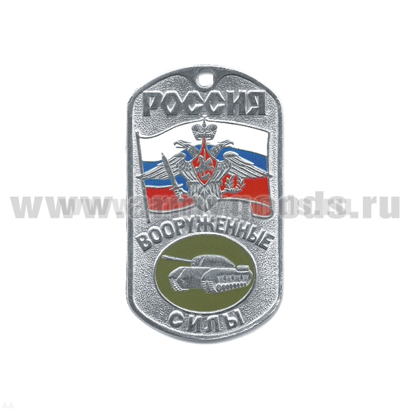 Жетон (нерж. ст., эмал.) сер. Россия ВС (с орлом РА на флаге РФ) танк. войска