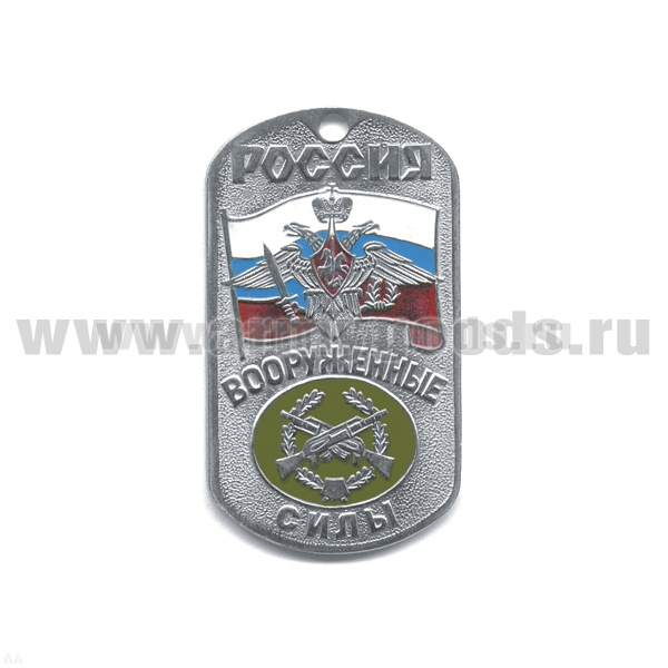 Жетон (нерж. ст., эмал.) сер. Россия ВС (с орлом РА на флаге РФ) мотострелк. войска