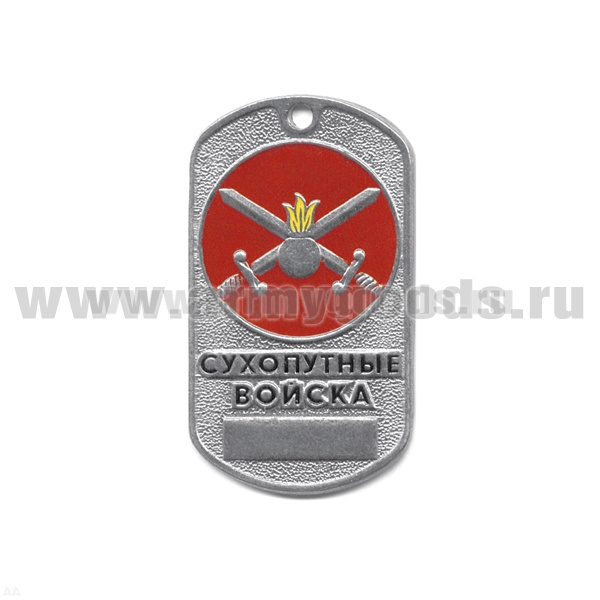 Жетон (нерж. ст., эмал.) сер. Рода войск (эмбл. в круге) сухопут. войска (эмбл. на красн. фоне)