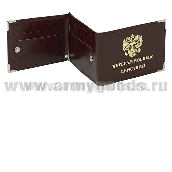 Обложка кожа под удост с мет уголками и зажимом Ветеран боевых действий