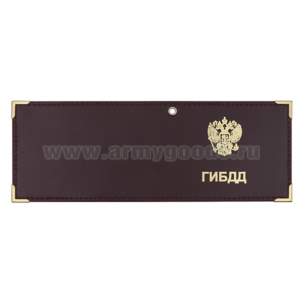 Обложка кожаная под удост. с мет. уголками и отв. д/цеп. на сгибе ГИБДД (орел РФ) цвет по наличию на складе