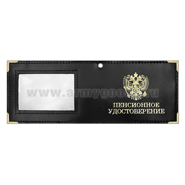 Обложка кожаная под удост. с мет. уголками и отв. д/цеп. на сгибе Пенсионное удостоверение окно (цвет по наличию на складе)
