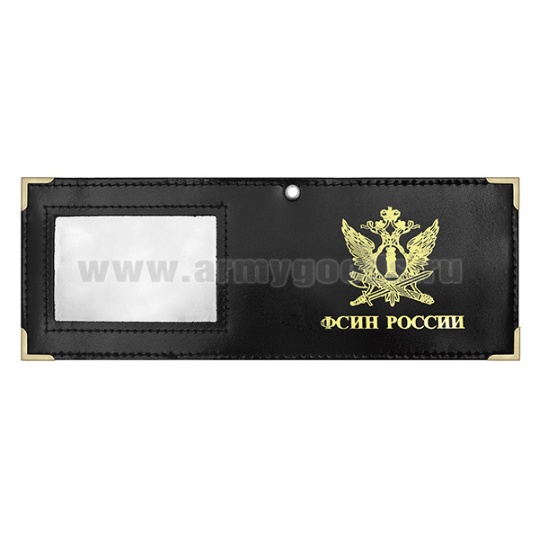 Обложка кожаная под удост. с мет. уголками и отв. д/цеп. на сгибе ФСИН России окно (цвет по наличию на складе)