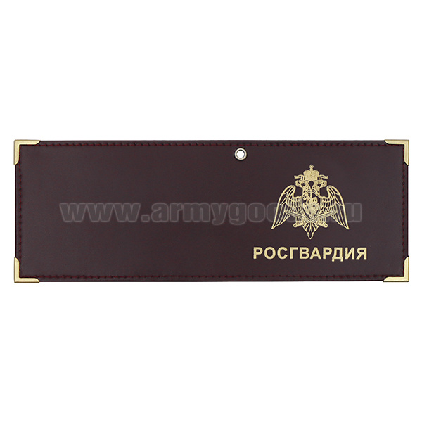 Обложка кожаная под удост. с мет. уголками и отв. д/цеп. на сгибе Росгвардия (цвет по наличию на складе)