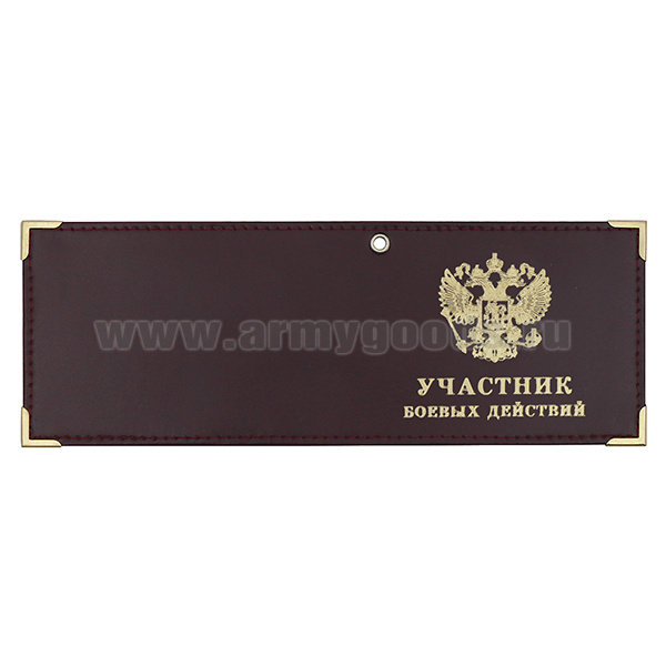 Обложка кожаная под удост. с мет. уголками и отв. д/цеп. на сгибе Участник боевых действий (цвет по наличию на складе)
