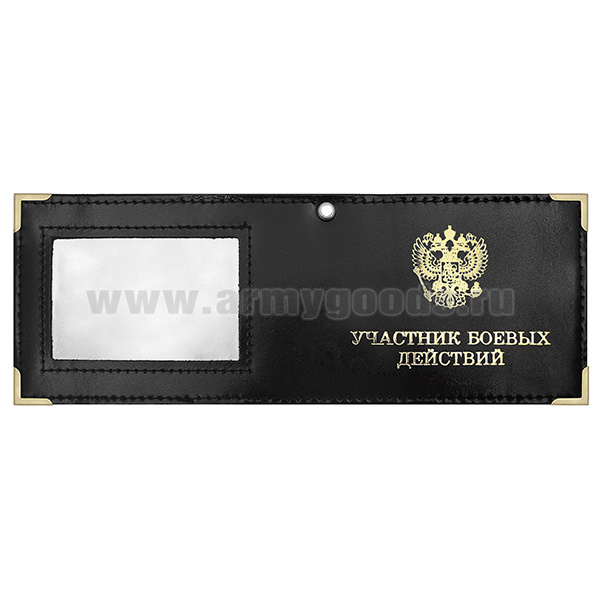 Обложка кожаная под удост. с мет. уголками и отв. д/цеп. на сгибе Участник боевых действий окно (цвет по наличию на складе)