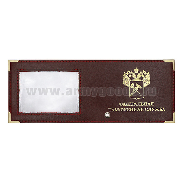 Обложка кожаная под удост. с мет. уголками и отв. д/цеп. на сгибе Федеральная таможенная служба окно (цвет по наличию на складе)