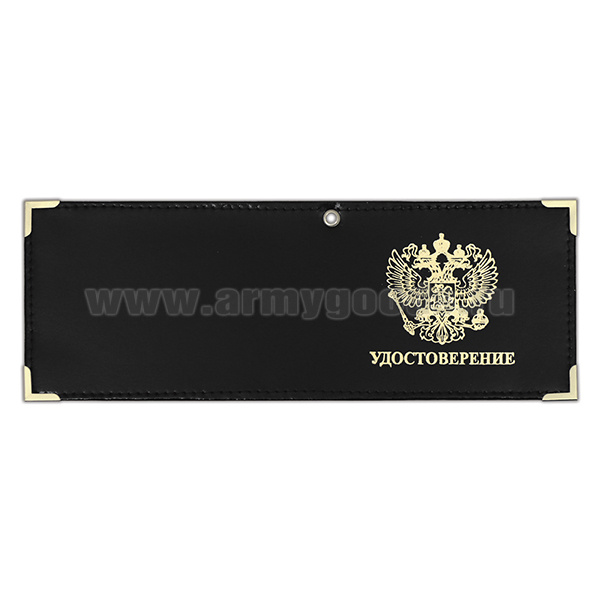 Обложка кожаная под удост. с мет. уголками и отв. д/цеп. на сгибе Удостоверение (орел РФ) цвет по наличию на складе