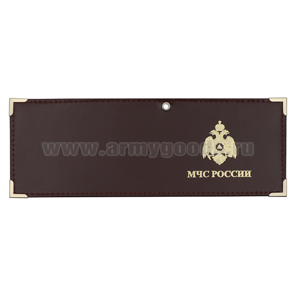 Обложка кожаная под удост. с мет. уголками и отв. д/цеп. на сгибе МЧС России (цвет по наличию на складе)