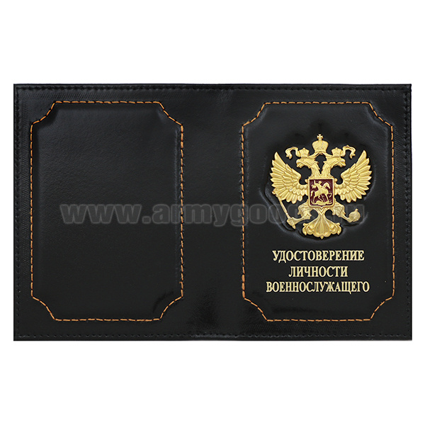 Обложка кожа с мет. накладкой Удостоверение личности военнослужащего (орел РФ) черная