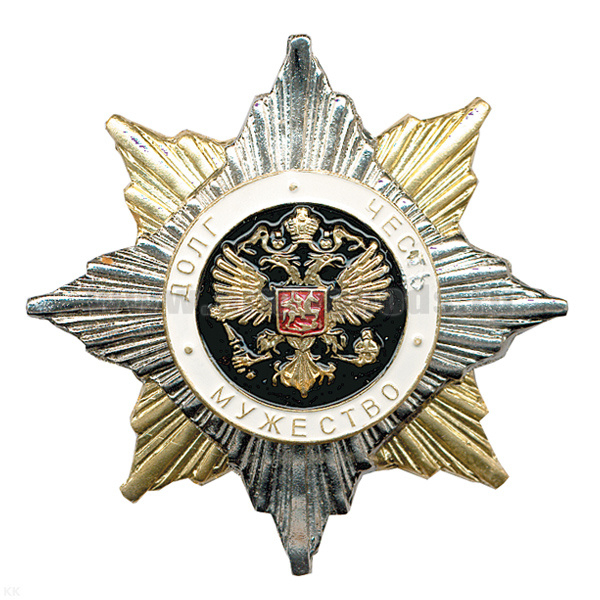 Значок мет. Орден-звезда Долг, Честь, Мужество (орел РФ на черн. фоне)
