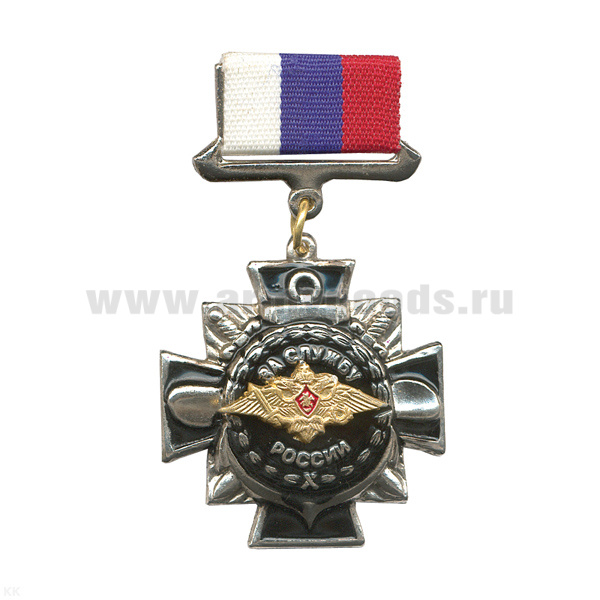 Медаль За службу России, лат. (на планке - лента РФ)