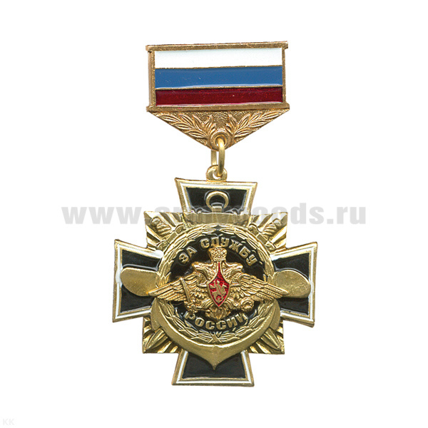Медаль За службу России (черн.) лат. (на планке - флаг РФ мет.)