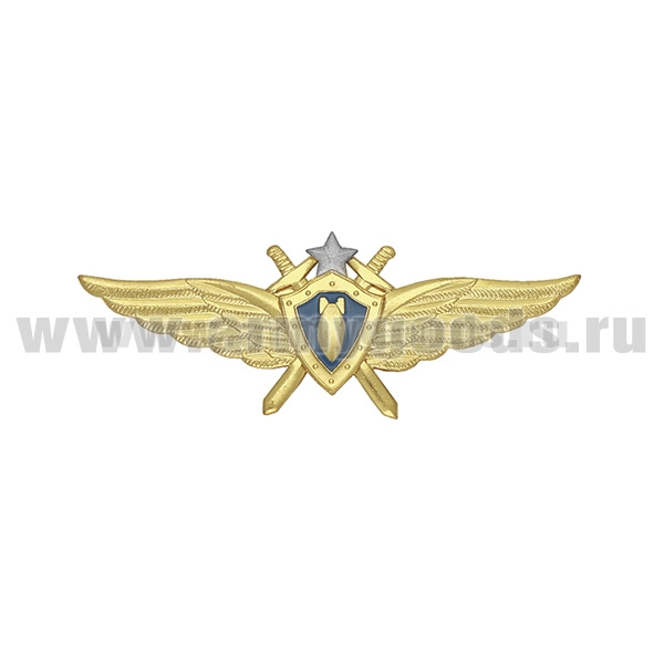 Значок мет. Классность ВВС нов/обр летчик-штурман (голубой щит, серебряная звезда, мечи)