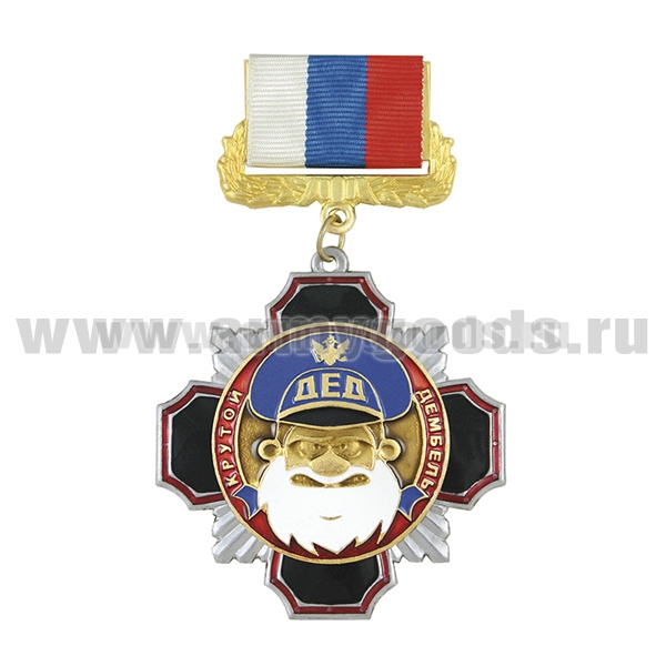 Медаль Стальной черн. крест с красн. кантом ДЕД Крутой дембель (голуб.)
