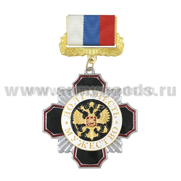 Медаль Стальной черн. крест с красн. кантом Долг Честь Мужество (орел РФ на черном фоне (на планке - лента РФ)