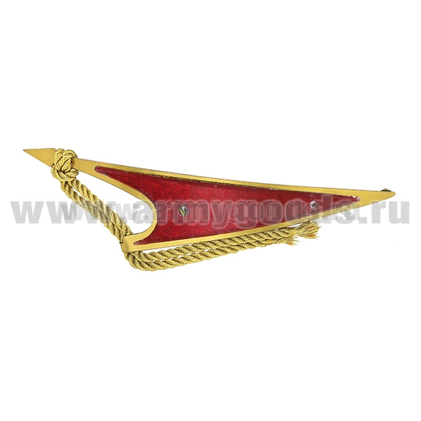 Флажок на берет неуст. (уголок) мет. красный бол. с зол. шнуром (нерж. сталь с зол. напылением и пласт. накладкой)