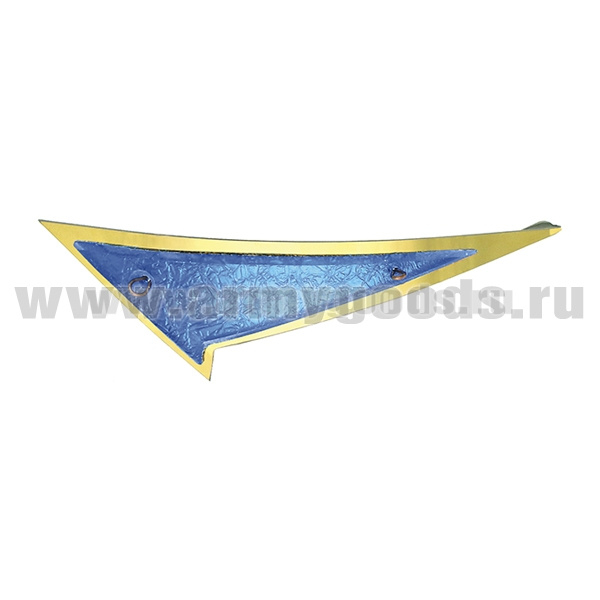 Флажок на берет неуст. (уголок) мет. голубой мал. (нерж. сталь с зол. напылением и пласт. накладкой) узкий