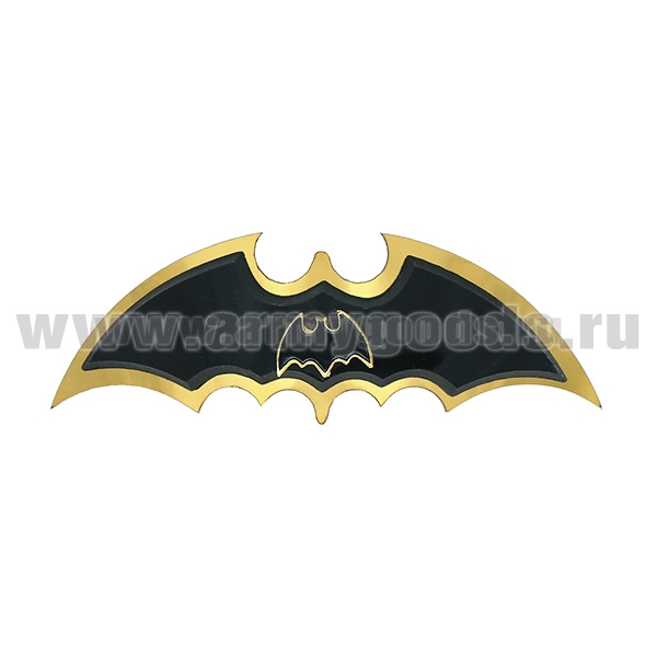 Эмблема на берет мет. Лет. мышь с накл. мышью (черный фон) нерж. сталь с зол. напылением и пласт. накладкой