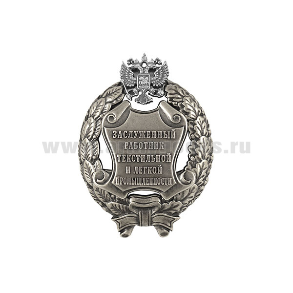 Значок мет. Заслуженный работник текстильной и легкой промышленности Российской Федерации