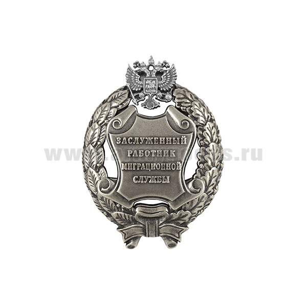 Значок мет. Заслуженный работник миграционной службы Российской Федерации