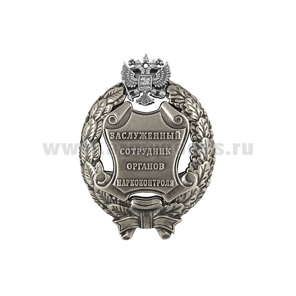Значок мет. Заслуженный сотрудник органов наркоконтроля Российской Федерации