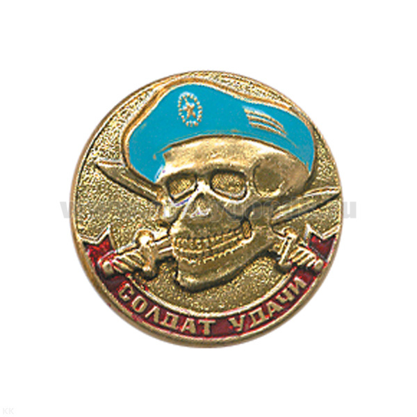 Значок мет. Солдат удачи (череп в голуб. берете) лат.