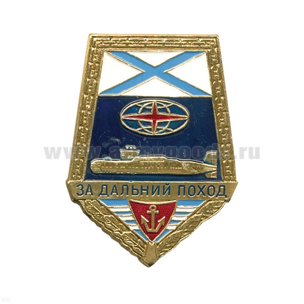 Значок мет. За дальний поход ("лопата" с андр. флагом) ПЛ, алюм.
