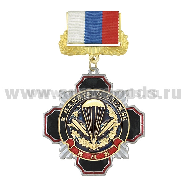 Медаль Стальной черн. крест с красн. кантом В память о службе (эмбл. ВДВ ст/обр)