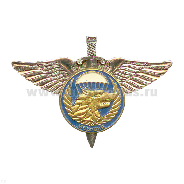Значок мет. Спецназ (волк) серия ВДВ (крылья и меч с эмбл.)