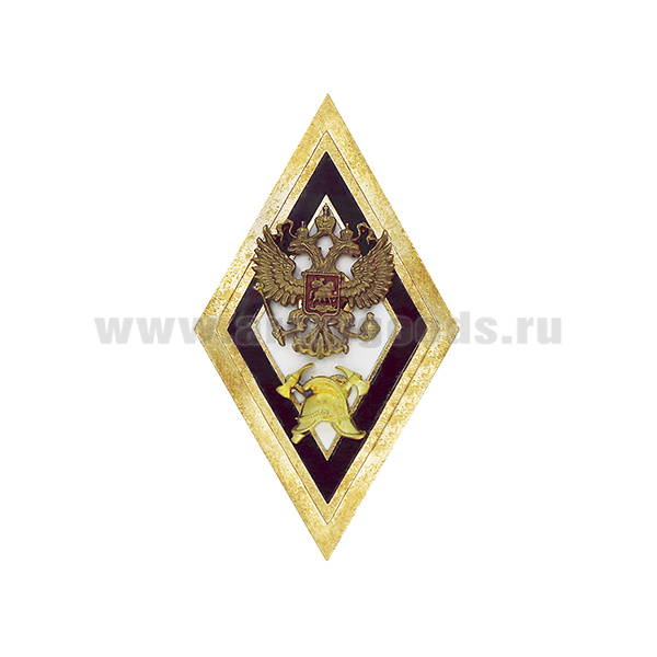 Значок мет. Ромб Высшее образование МЧС ГПС РФ (красный кант) гор. эм