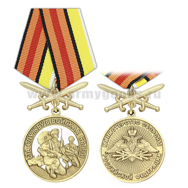 Медаль За службу в войсках связи (МО РФ) колодка с мечами