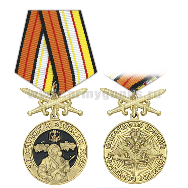 Медаль За службу в войсках РХБЗ (МО РФ) колодка с мечами