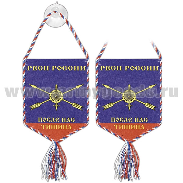 Вымпел шелкография автомоб. на присоске РВСН России (После нас тишина) пятиуг.