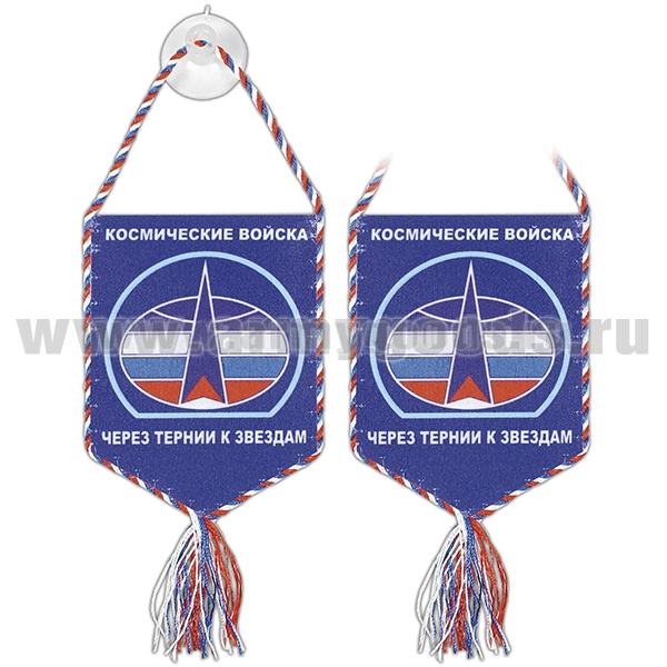 Вымпел шелкография автомоб. на присоске Космические войска (Через тернии к звездам) пятиуг.
