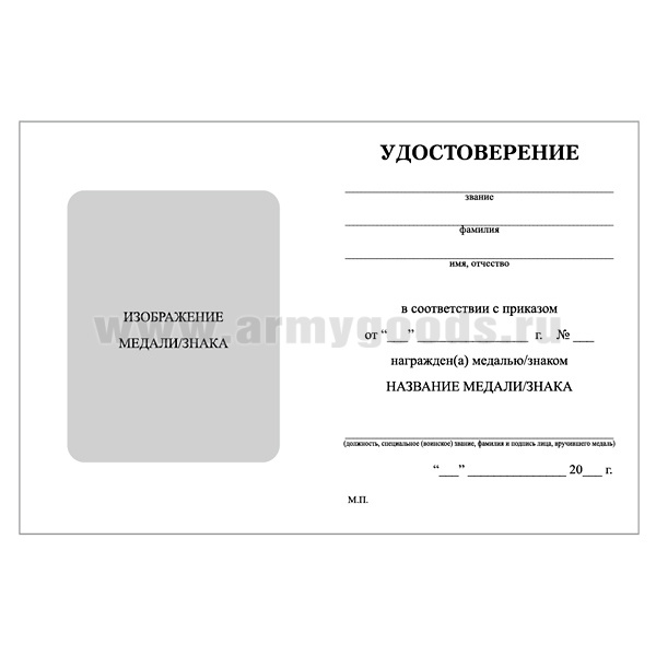 Удостоверение к медали / знаку