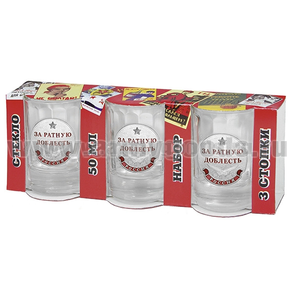 Стопки стеклянные (3x50 мл) с накладками (За ратную доблесть)