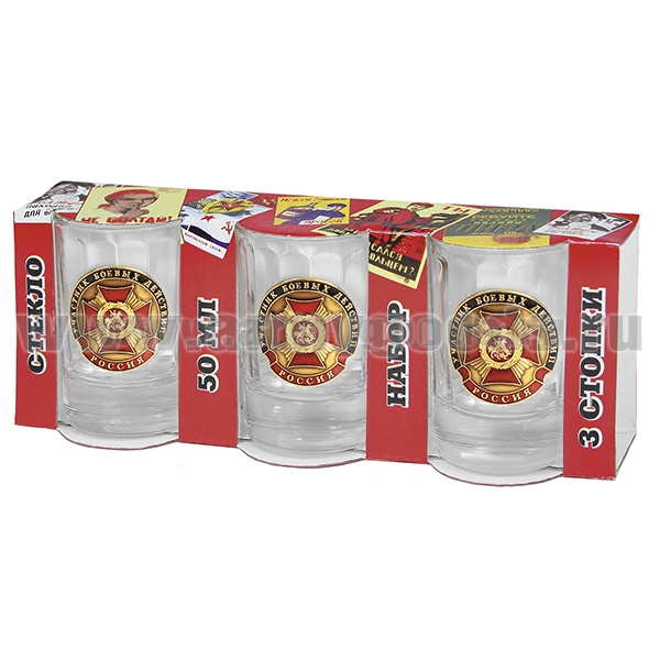 -Стопки стеклянные (3x50 мл) с накладками (Участник боевых действий)