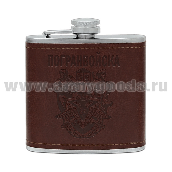 Фляга (нерж. сталь) с тиснением на коже Погранвойска (6 oz (180 мл)