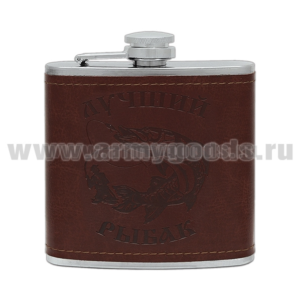 Фляга (нерж. сталь) с тиснением на коже Лучший рыбак (6 oz (180 мл)
