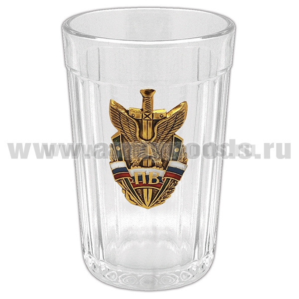 Стакан стеклянный граненый с накладкой ПВ (орел и меч)