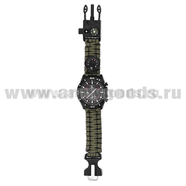Часы наручные туристические (компас, свисток, огниво, верёвка паракордовая) цвет ремешка в ассортименте
