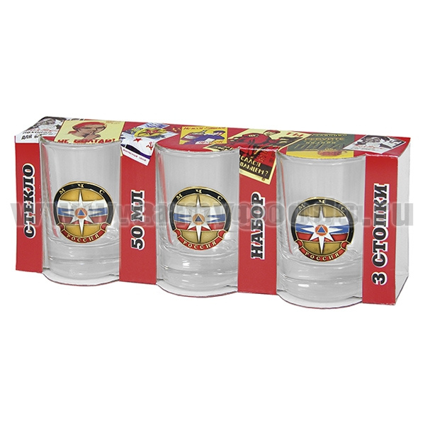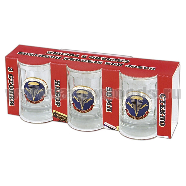 Стопки стеклянные (3x50 мл) с накладками ВДВ (эмбл. нов/обр)