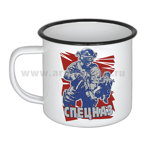Кружка эмалированная 0,5 л с рис. (деколь) Спецназ (два бойца)