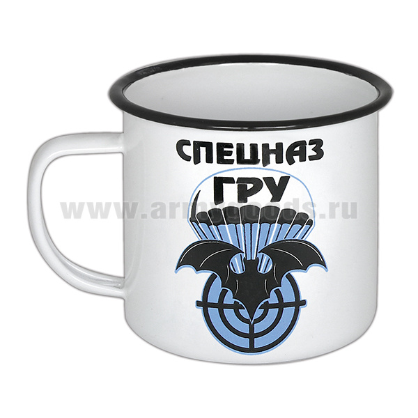 Кружка эмалированная 0,5 л с рис. (деколь) Спецназ ГРУ (лет. мышь, парашют)