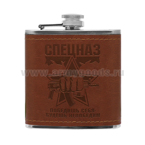 Фляга (нерж. сталь) с тиснением на коже Спецназ Победишь себя - будешь непобедим (6 oz (180 мл)