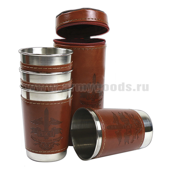 Стопки мет. (4х125 мл) с тиснением на коже РВСН После нас только тишина (в чехле)