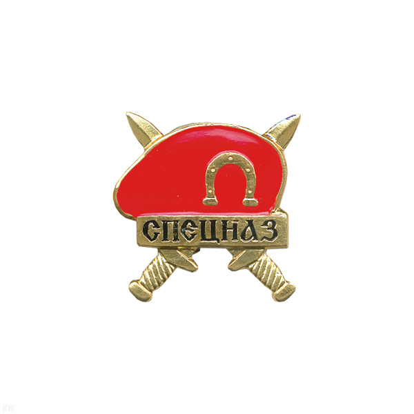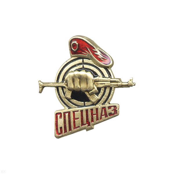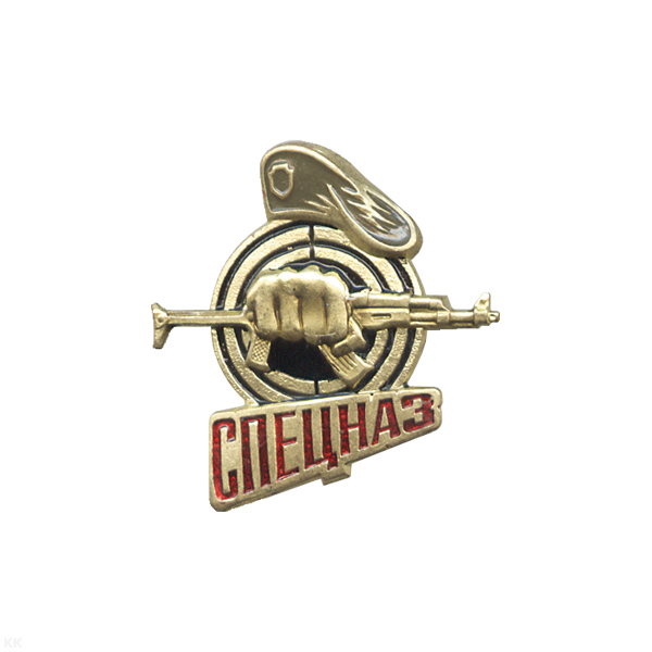 Значок мет. Спецназ (кулак с автоматом без венка) крапов. берет