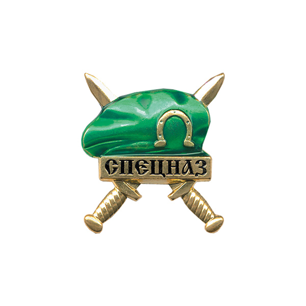 Значок мет. Спецназ (кулак с автоматом без венка) зел. берет