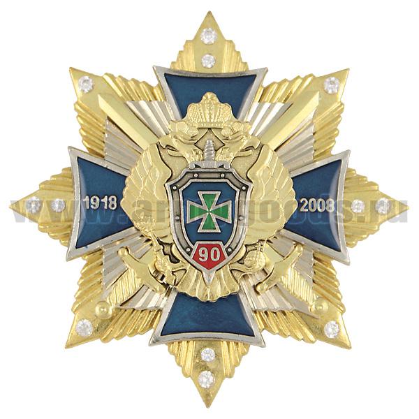 Значок мет. 90 лет ПС 1918-2008 (син. крест с накл., на звезде с фианитами)